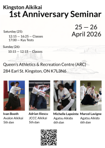 We are excited to invite the Aikido community in and around Kingston, as well as our Aikido friends across Canada, to celebrate our first anniversary seminar. We look forward to seeing everybody on the mat!