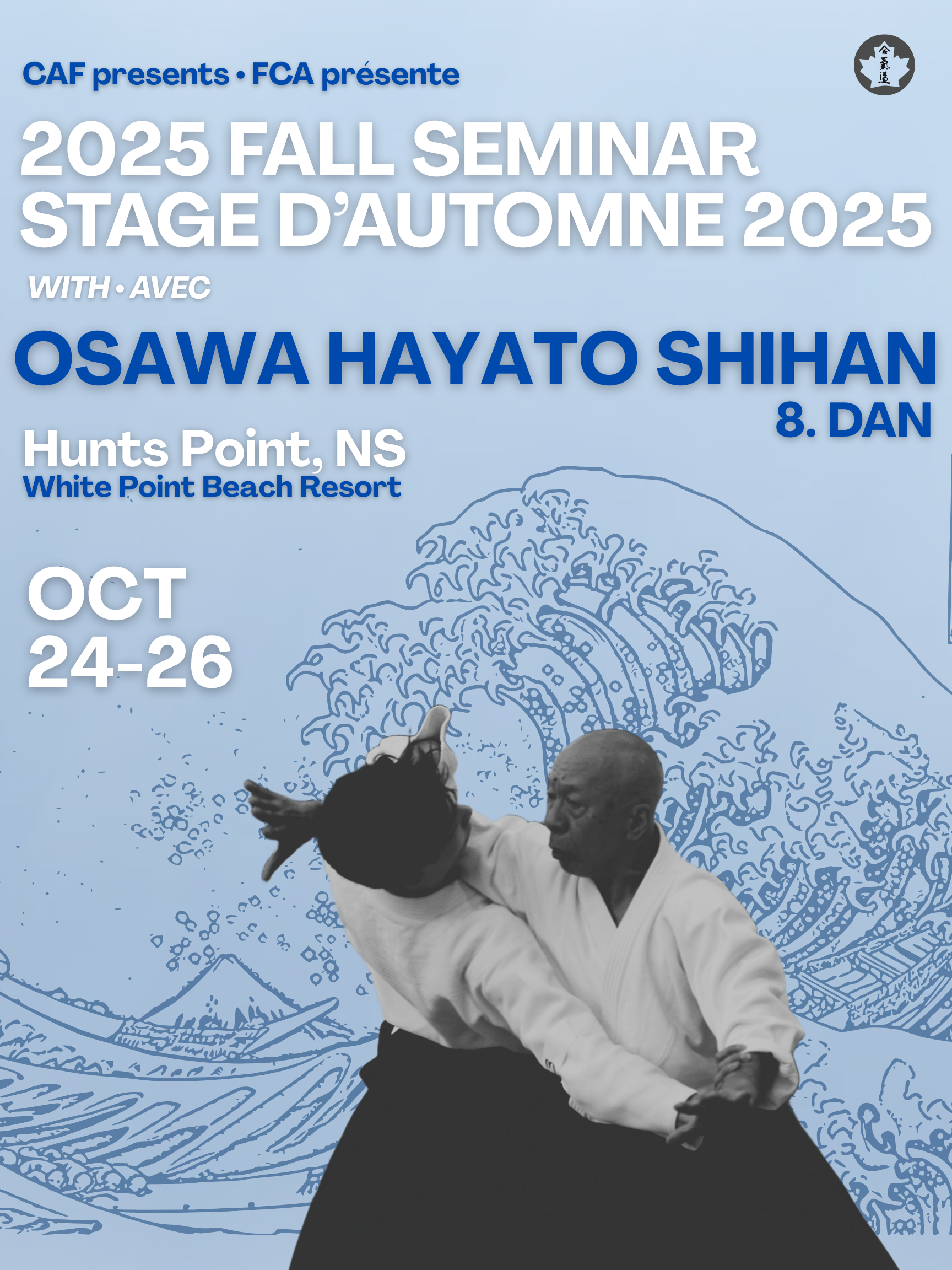 Nous avons hâte de vous retrouver au stage d’automne 2025 de la FCA en Nouvelle-Écosse, en compagnie de notre directeur technique Osawa Hayato Shihan, 8e Dan, de Hombu Dojo au Japon. Le stage aura lieu au magnifique White Point Beach Resort, à environ deux heures d’Halifax, au bord de l’eau, et propose de nombreuses attractions et activités pour les couples, amis et enfants. Veuillez noter qu’il n’y a pas de transport en commun pour s’y rendre. Deux autobus affrétés par la FCA circuleront le vendredi : l’un partira de l’aéroport d’Halifax vers 14 h et arrivera au complexe vers 16 h, et l’autre partira de l’aéroport vers 21 h et arrivera au complexe vers 23 h (heures exactes à déterminer). Le dimanche, un seul autobus affrété partira du complexe vers 13 h et reviendra à l’aéroport vers 15 h. Nous encourageons vivement tout le monde à assister aux cours du vendredi soir et à réserver son vol aller-retour pour arriver à temps et prendre l’autobus affrété plus tôt dans l’après-midi. Il est également très IMPORTANT de communiquer aux organisateurs de l’événement les détails de vos vols aller et retour dès leur réservation. Le lien d’inscription au stage sera disponible sur le site web de la FCA. Les places pour le banquet et le transport affrété pourront être réservées lors de l’inscription.